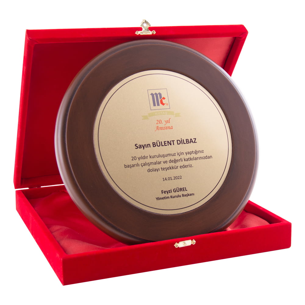 25 CM CAPINDA 18 MM KALINLIGINDA ESKİTME CİLALI KADİFE KUTULU PLAKET